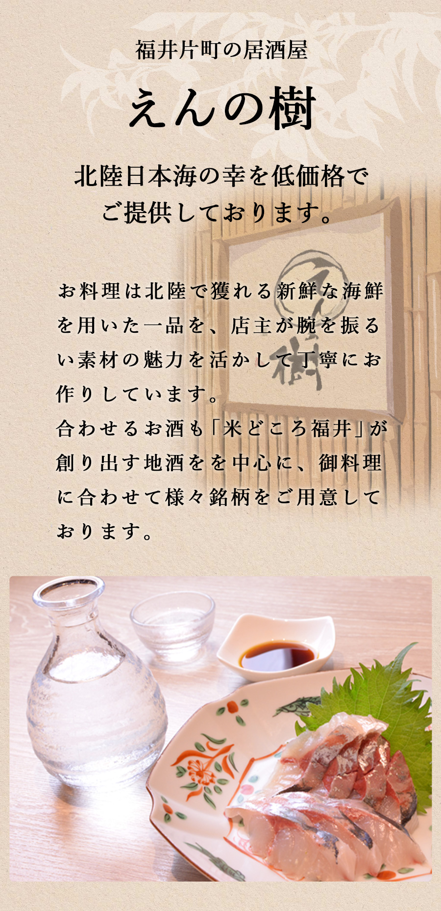 福井県 片町にある夫婦で営業している居酒屋 「えんの樹」